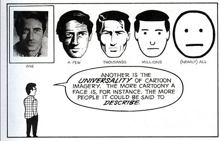 Let's go back to the first McCloud quote, about the simplification of the image. Simplification helps readers see the character not as someone else, but as someone they relate to.